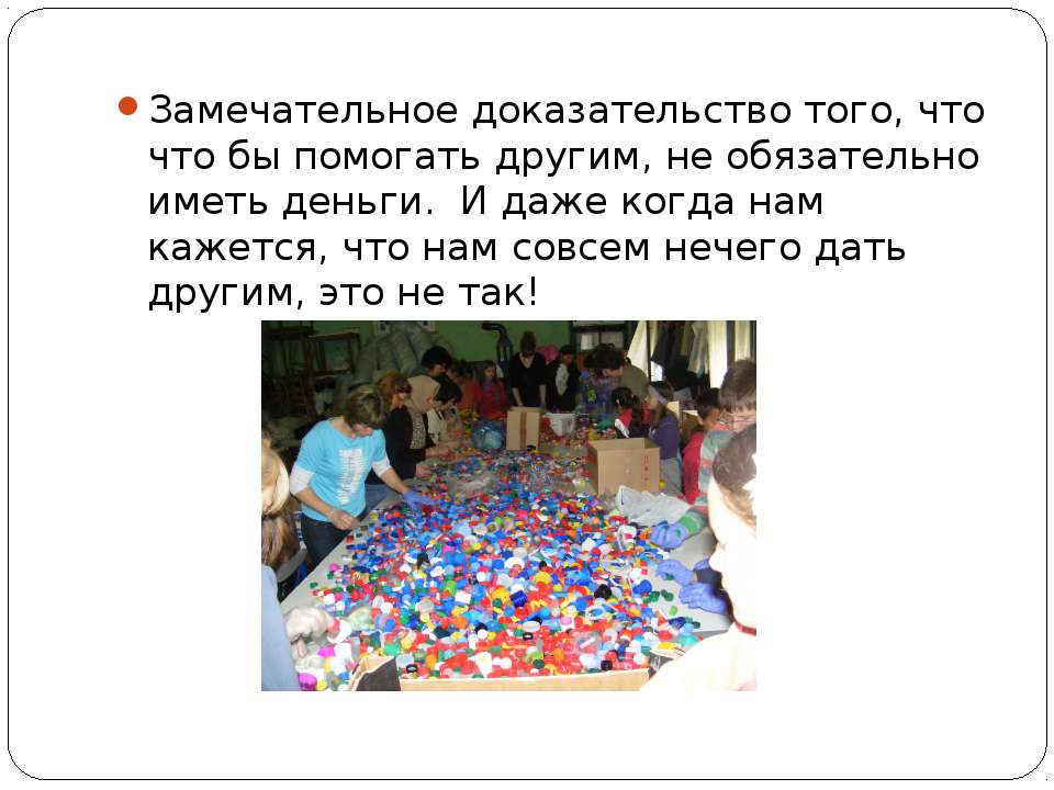Текст слайда: Замечательное доказательство того, что что бы помогать другим, не обязательно иметь деньги. И даже когда нам кажется, что нам совсем нечего дать другим, это не так!
