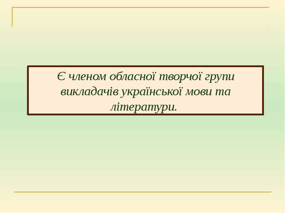 Текст слайда: Є членом обласної творчої групи викладачів української мови та літератури.