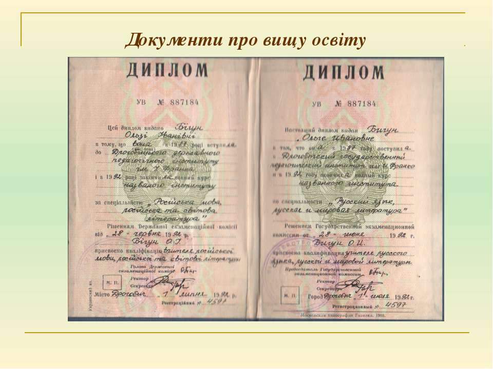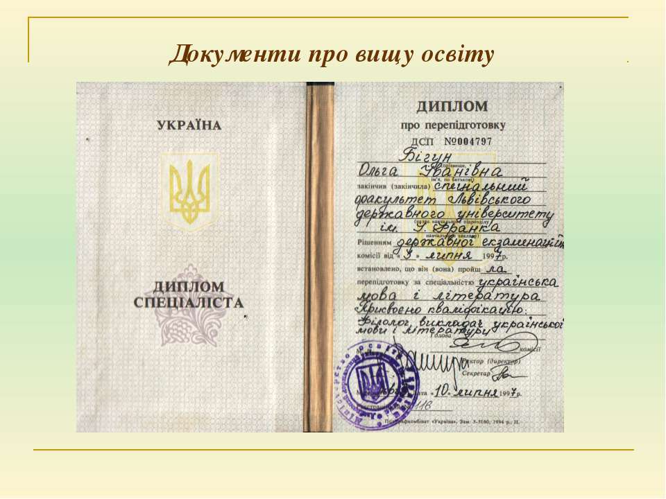 Текст слайда: Документи про вищу освіту