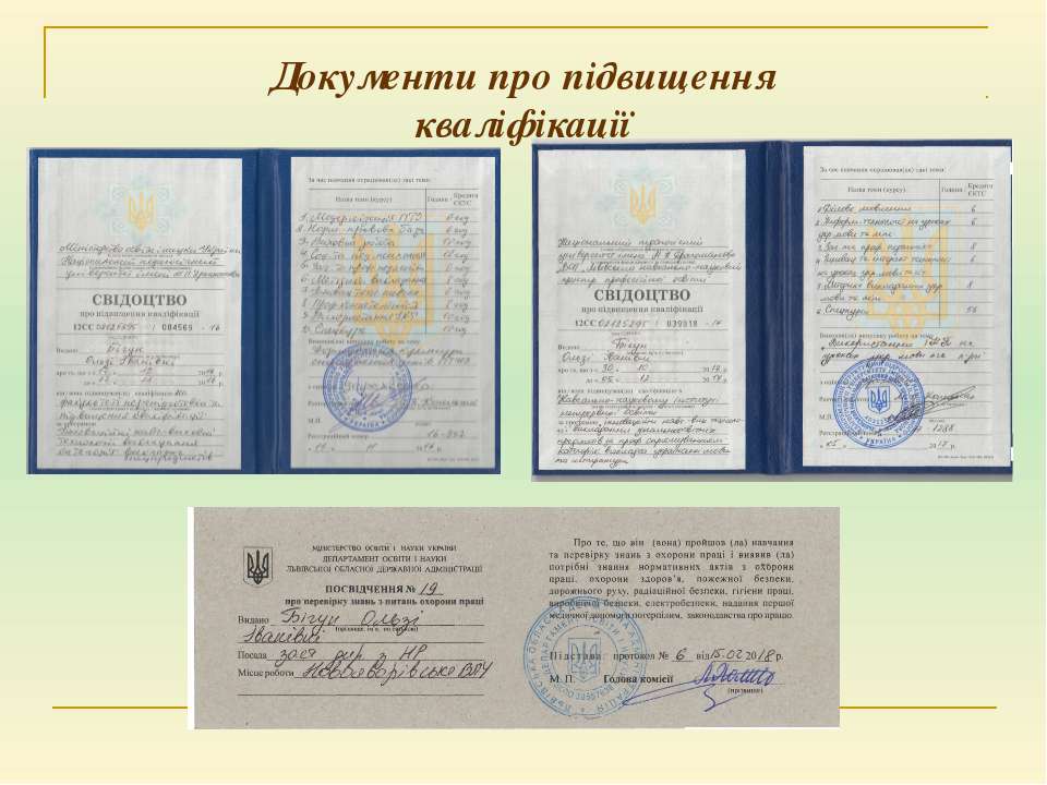 Текст слайда: Документи про підвищення кваліфікації