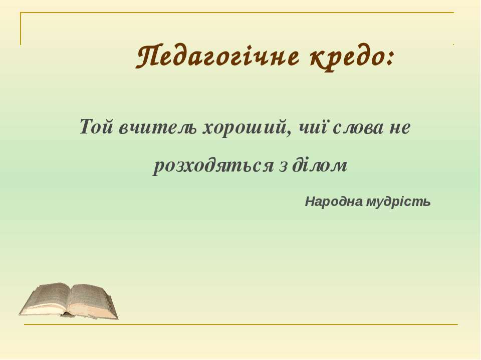 Текст слайда: Педагогічне кредо: Той вчитель хороший, чиї слова не розходяться з ділом Народна мудрість