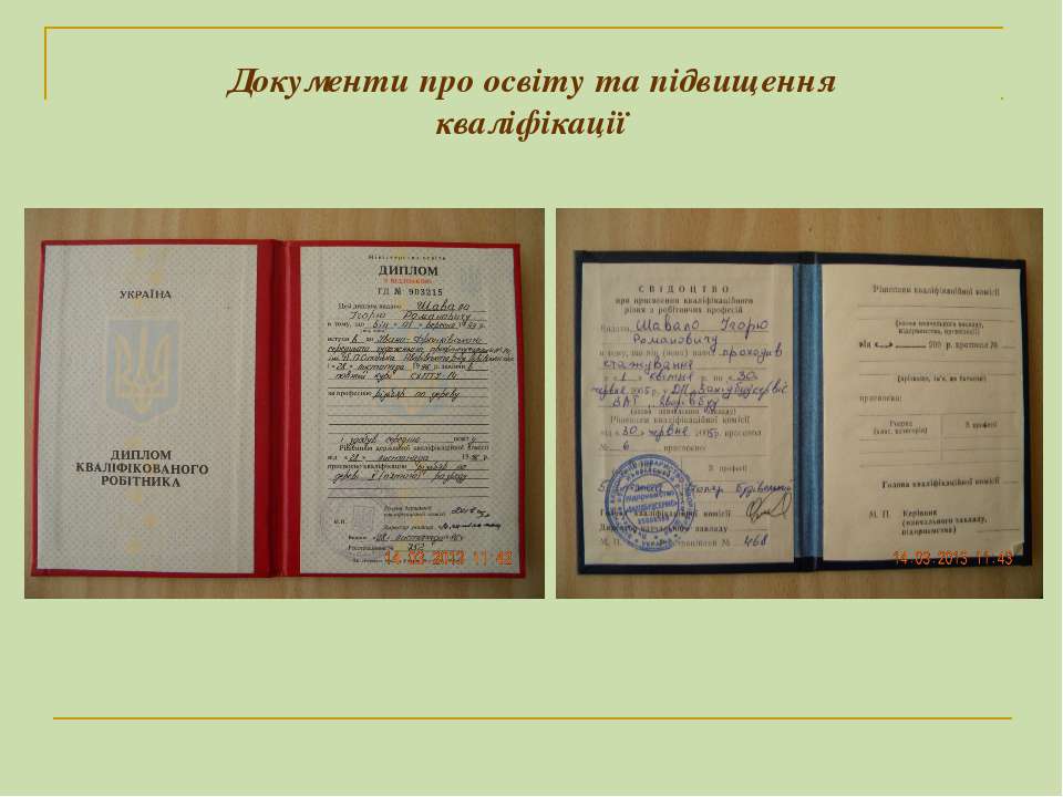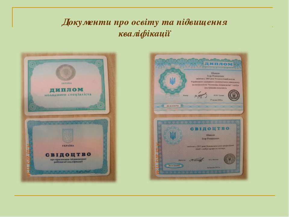 Текст слайда: Документи про освіту та підвищення кваліфікації